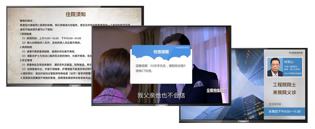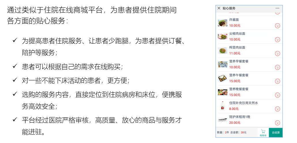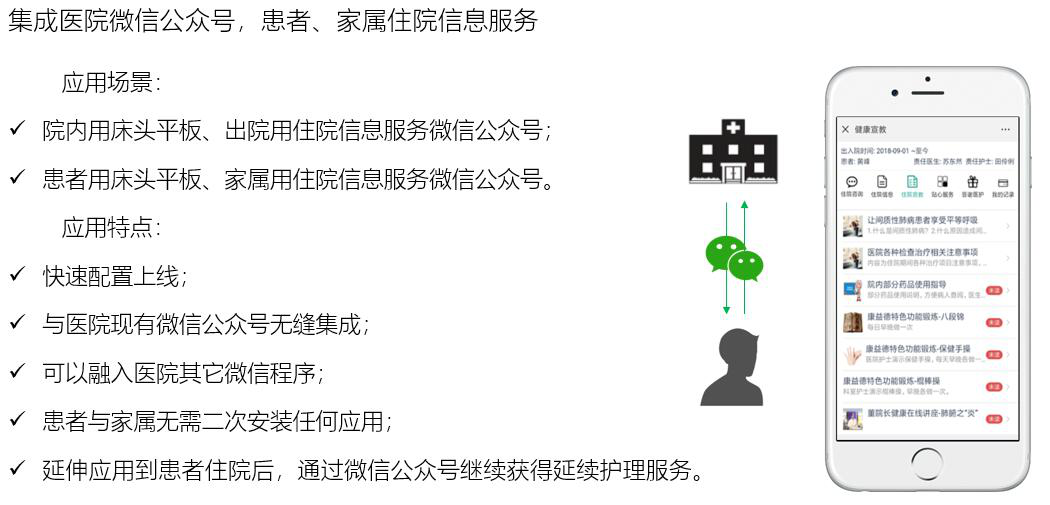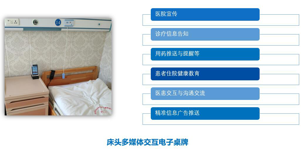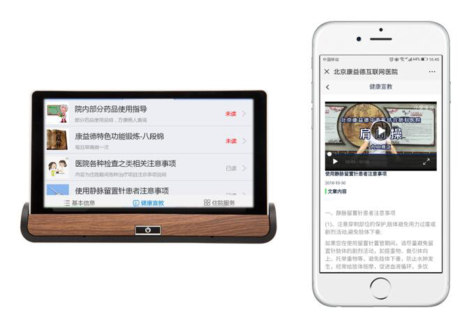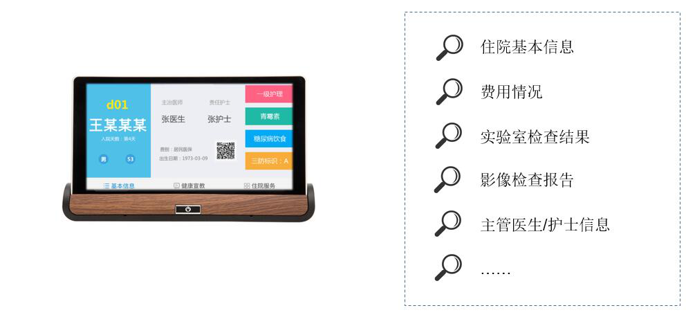 拓展床旁醫(yī)護(hù)、營(yíng)養(yǎng)點(diǎn)餐、患者貼心服務(wù)、醫(yī)患交流、住院宣教、健康指導(dǎo)等功能,改善住院服務(wù)流程,改善患者就醫(yī)體驗(yàn),優(yōu)化醫(yī)患交互,改善醫(yī)療服務(wù)模式,提升智慧醫(yī)療的效率和水平。