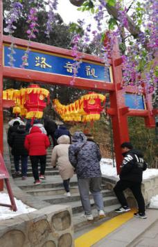 第二天早上9:00點(diǎn),我們團(tuán)體到達(dá)紅螺寺景區(qū),位于北京市懷柔區(qū)城北5公里的紅螺山南麓,距北京市區(qū)55公里,景區(qū)總面積800公頃,國家AAAA級旅游區(qū)。始建于東晉咸康四年(公元338)年,原名“大明寺”(明正統(tǒng)年間易名“護(hù)國資福禪寺”,因紅螺仙女的美妙的傳說,俗稱“紅螺寺”)。紅螺寺坐北朝南,依山勢而建,布局嚴(yán)謹(jǐn),氣勢雄偉。現(xiàn)在時節(jié)三九,北方冰天雪地,此時攀登由緩緩的山勢而上,身體慢慢散發(fā)熱量,爬到山頂已經(jīng)是大汗淋漓,站在頂端俯視村莊,遠(yuǎn)眺雁西湖畔、懷柔水庫,高矮錯落的房子......心境舒爽。