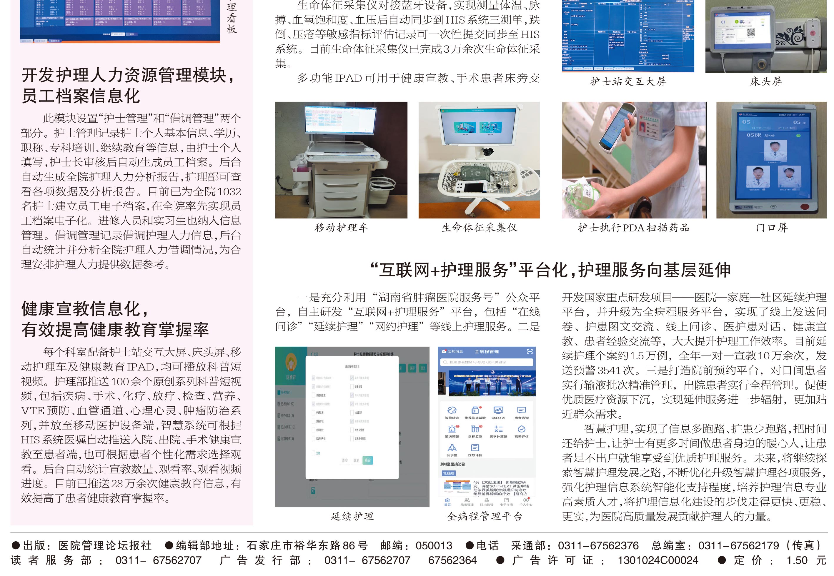 北京天坦智能全面建設(shè)湖南省腫瘤醫(yī)院智慧護(hù)理,從醫(yī)院頂層設(shè)計(jì)制定“智慧病房”建設(shè)項(xiàng)目,深耕細(xì)作開(kāi)發(fā)出集護(hù)理管理和臨床服務(wù)為一體的智慧病區(qū)綜合管理平臺(tái),為臨床提供便捷、精準(zhǔn)、高效的信息系統(tǒng)支撐,實(shí)現(xiàn)護(hù)理質(zhì)控精準(zhǔn)化、護(hù)理管理數(shù)據(jù)化,促進(jìn)醫(yī)院護(hù)理高質(zhì)量發(fā)展。