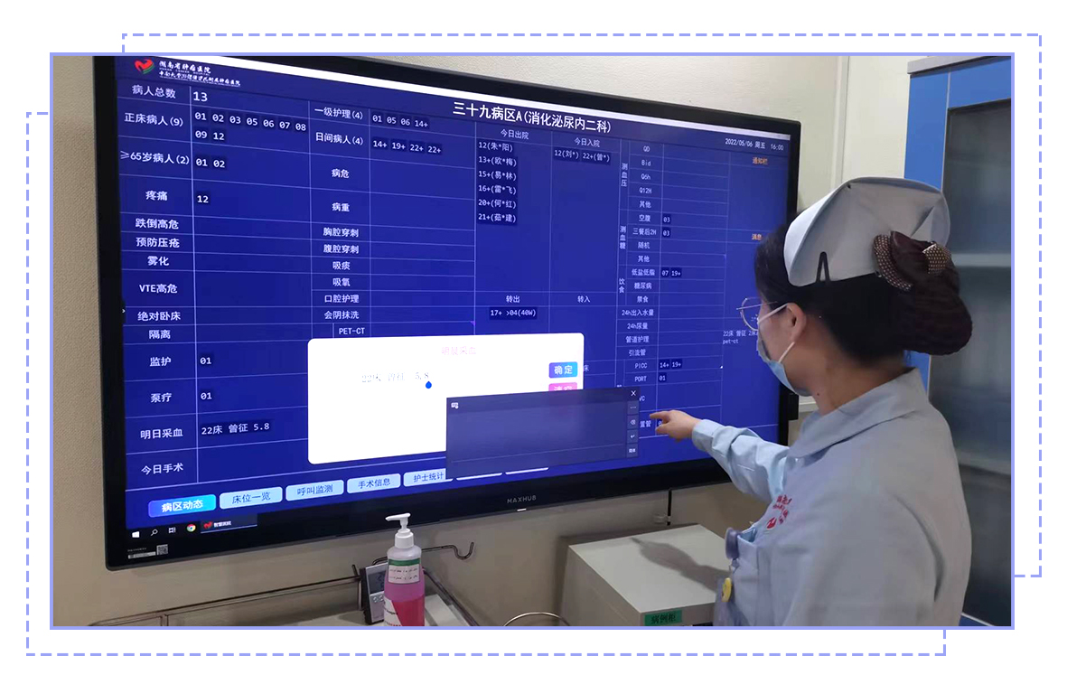 患者床頭屏是一個(gè)電子化的床頭卡,它結(jié)合了傳統(tǒng)的床頭呼叫器,患者需要幫助時(shí)可一鍵呼叫,并且它還可以實(shí)時(shí)更新患者數(shù)據(jù)顯示,有了它護(hù)士每日可快速完成三查七對(duì)的護(hù)理工作。