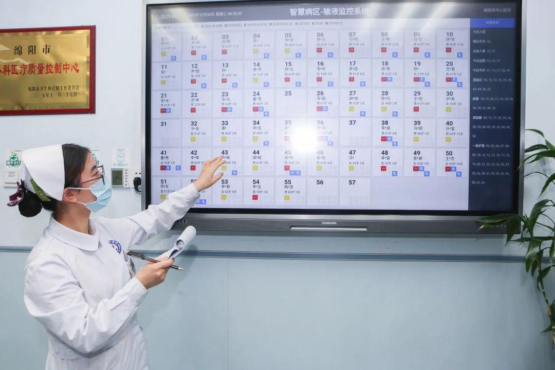 走進市中心醫(yī)院心胸外科護士站,呈現(xiàn)在眼前的是一塊超大高清屏幕,“這是我們的智慧病房,通過管理中心與護士站、HIS系統(tǒng)對接,實現(xiàn)病區(qū)信息互通,患者信息一屏盡覽,”心胸外科護士長李金學(xué)說道,“能幫助醫(yī)護人員更為精確地了解病區(qū)患者輸液情況等動態(tài)、關(guān)注重點病人,真正做到心中有數(shù)。”