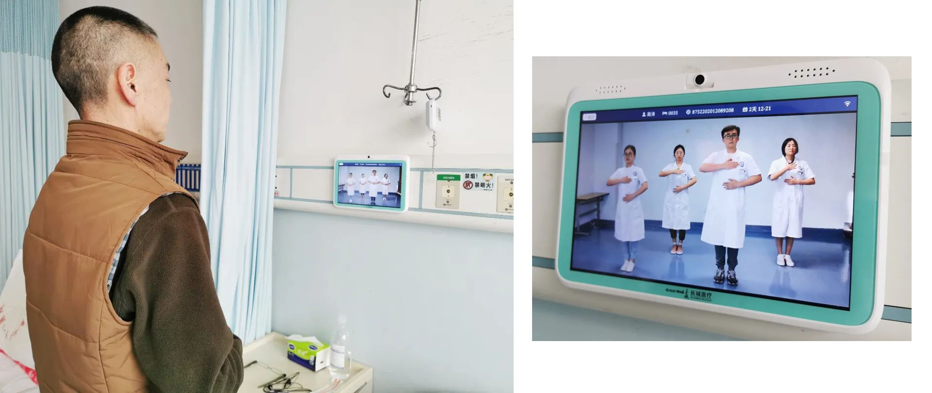在市中心醫(yī)院心胸外科病房,剛?cè)朐旱牧质迨逭龑χ〈泊差^的電子屏幕跟著醫(yī)護人員一起做呼吸訓(xùn)練操……林叔叔因肺部結(jié)節(jié)入院準備手術(shù),術(shù)前術(shù)后的呼吸訓(xùn)練能幫助他快速康復(fù),“以前我們會把患者集中組織起來教他們做呼吸訓(xùn)練操,但是可能學(xué)一次就忘了,現(xiàn)在我們把這些健教視頻放在患者床頭的電子屏上,患者可隨時可以點進去跟著練習(xí),”護士長李金學(xué)介紹,“除此之外,林叔叔還可以通過這塊屏幕實現(xiàn)診療計劃查詢、床旁掃碼繳費、費用明細查詢……以后我們還想利用這套信息系統(tǒng)完成床旁結(jié)算,患者從住院到出院,在病房就能一站式完成。”